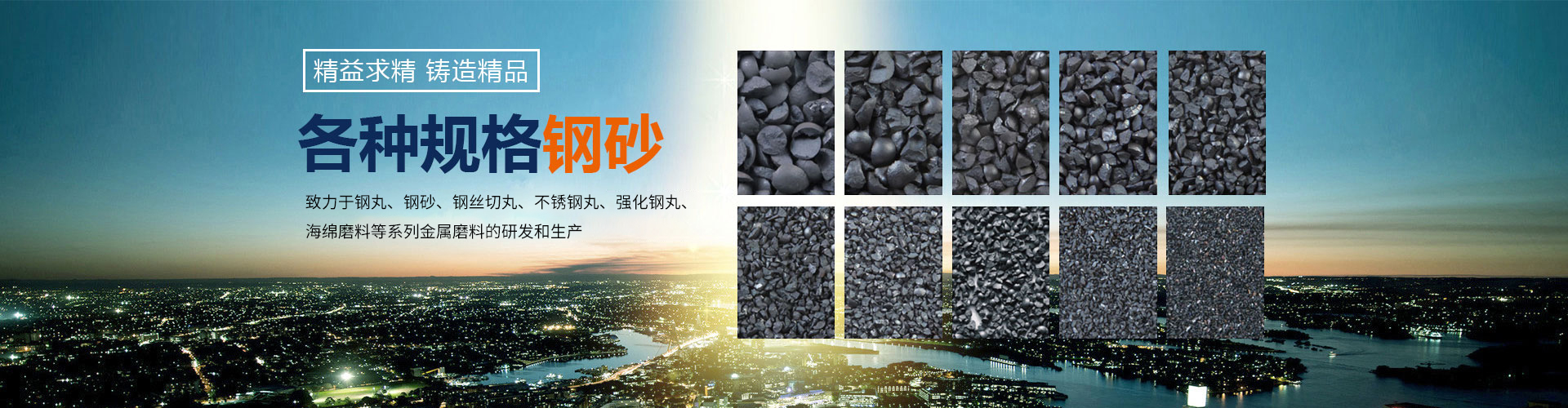 年產30萬噸規格種類齊全的鑄鋼丸、鑄鋼砂、合金鋼丸、 不銹鋼丸、鋁丸、銅丸、鋅丸、高碳鋼丸、低碳鋼丸、 強化鋼丸、鉻鉬鋼丸、鋼絲切丸等合格的金屬磨料;